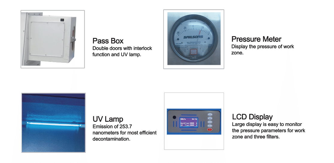 2. UV lamp ensures work area sterilization effectively.