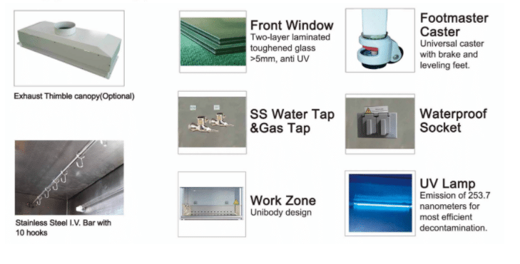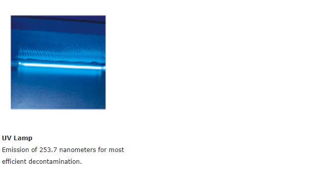 6. Interlock function: UV lamp and front window; UV lamp and blower, fluorescent lamp; Blower and front window.